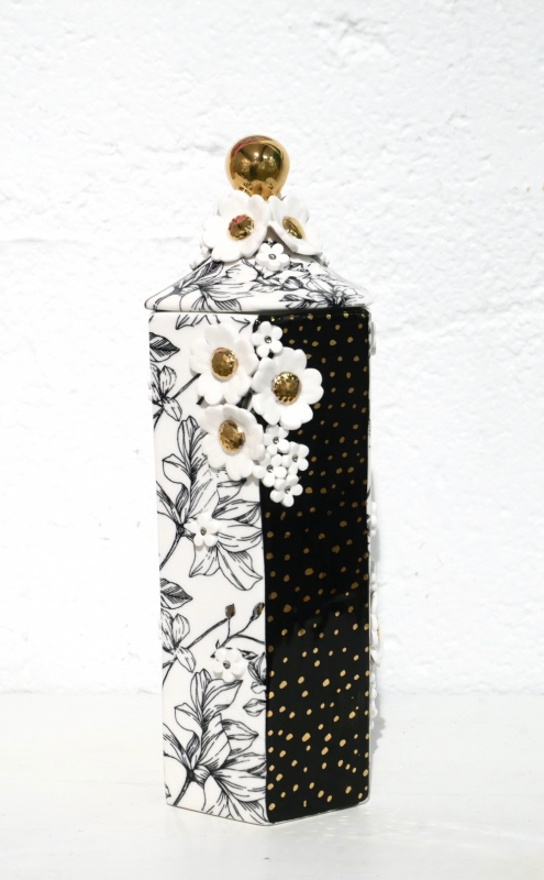 Each HEX JAR is a testament to craftsmanship, with meticulous attention to detail. The porcelain surface is adorned with delicate flowers, brought to life with accents of platinum and/or 12ct gold. These exquisite touches add a touch of opulence and refinement to this already beautiful piece.