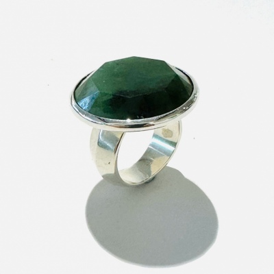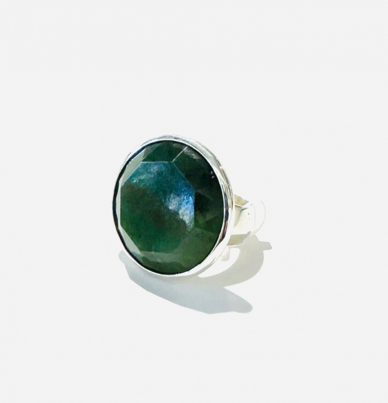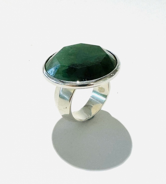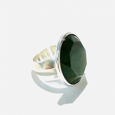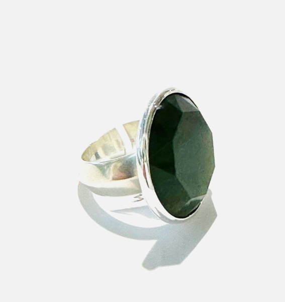Sterling silver and facetted NZ Pounamu create this stunning ring.