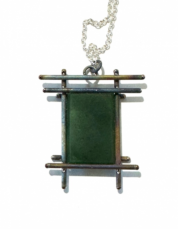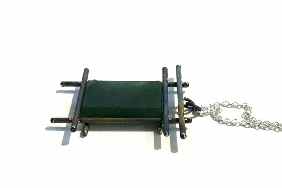 Architectural in design, this necklace is made from New Zealand Pounamu, and Titanium.