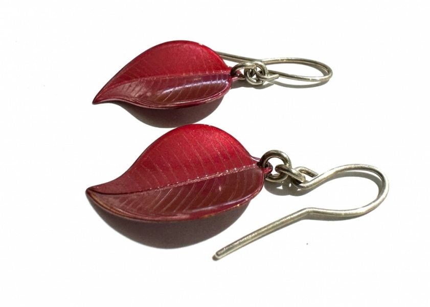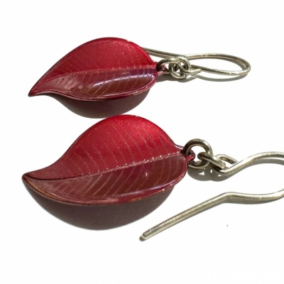 These earings are made from copper that has a red oxidised finish, they are NZ native round Rata leaves