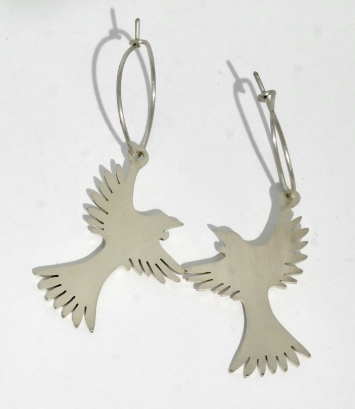 Handcrafted in sterling silver these earings show Tui birds in flight.