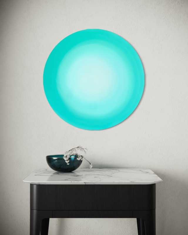 This artwork is a luminous exploration of light, colour, and emotion. Created on mirrored or aluminium surfaces with pigments and epoxy polymer, each piece captures the shifting beauty of space through refined Minimalist and Formalist expression. These circular works evoke infinity, calm, and connection—where form, light, and colour converge in imperfect symmetry to reflect beauty at its most essential.
