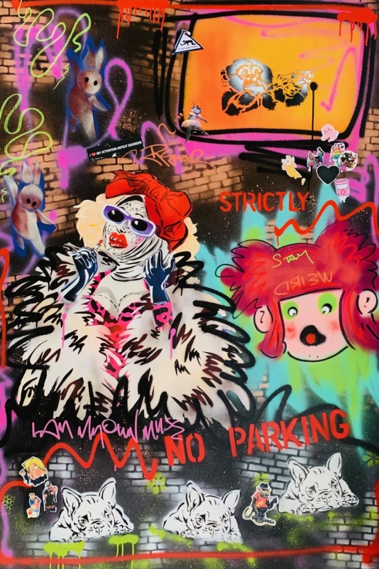 Rachel Rush is an artist working in colours in movement overlayed with resin. She also has the funky style of street art, working with graffiti, stencils and collages to create stand-out expressions of delight.