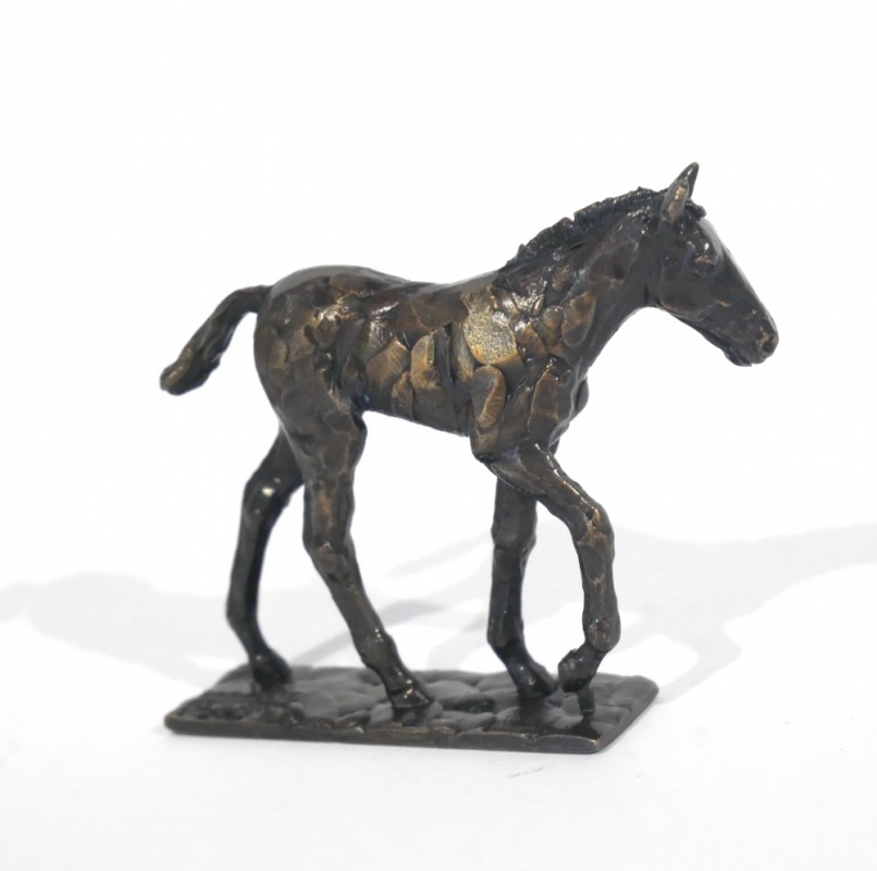 These tiny bronze sculptures are the workmanship of carver Aaron Brown. Horse Height 6cm Base 5x1.5cm