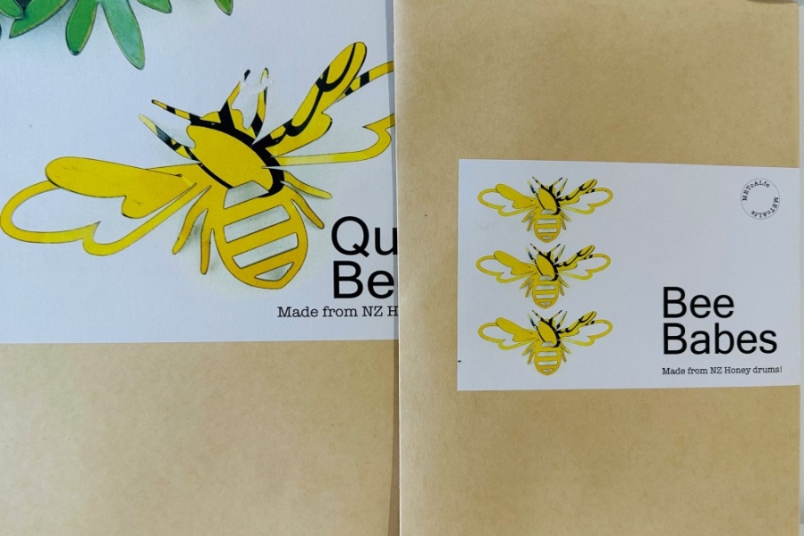 This Bossy Queen is looking for a new hive... She is made from repurposed 44 gallon NZ Honey drums. Queen Bee is flat packed in an envelope and pins are provided to fix them to a wall. 15x32 cm